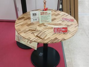 次に、展示会当日の様子についてお伝えします。多くの来場者の方々にブースへお越しいただき、素材選びのこだわりや製造工程について直接お話しすることができました。さらに、廃棄される素材を再活用したアップサイクル製品への関心も高く、多くの反応をいただきました。そして、国産材を使った木製品にも注目が集まり、私たちの取り組みが広く伝わったと感じています。